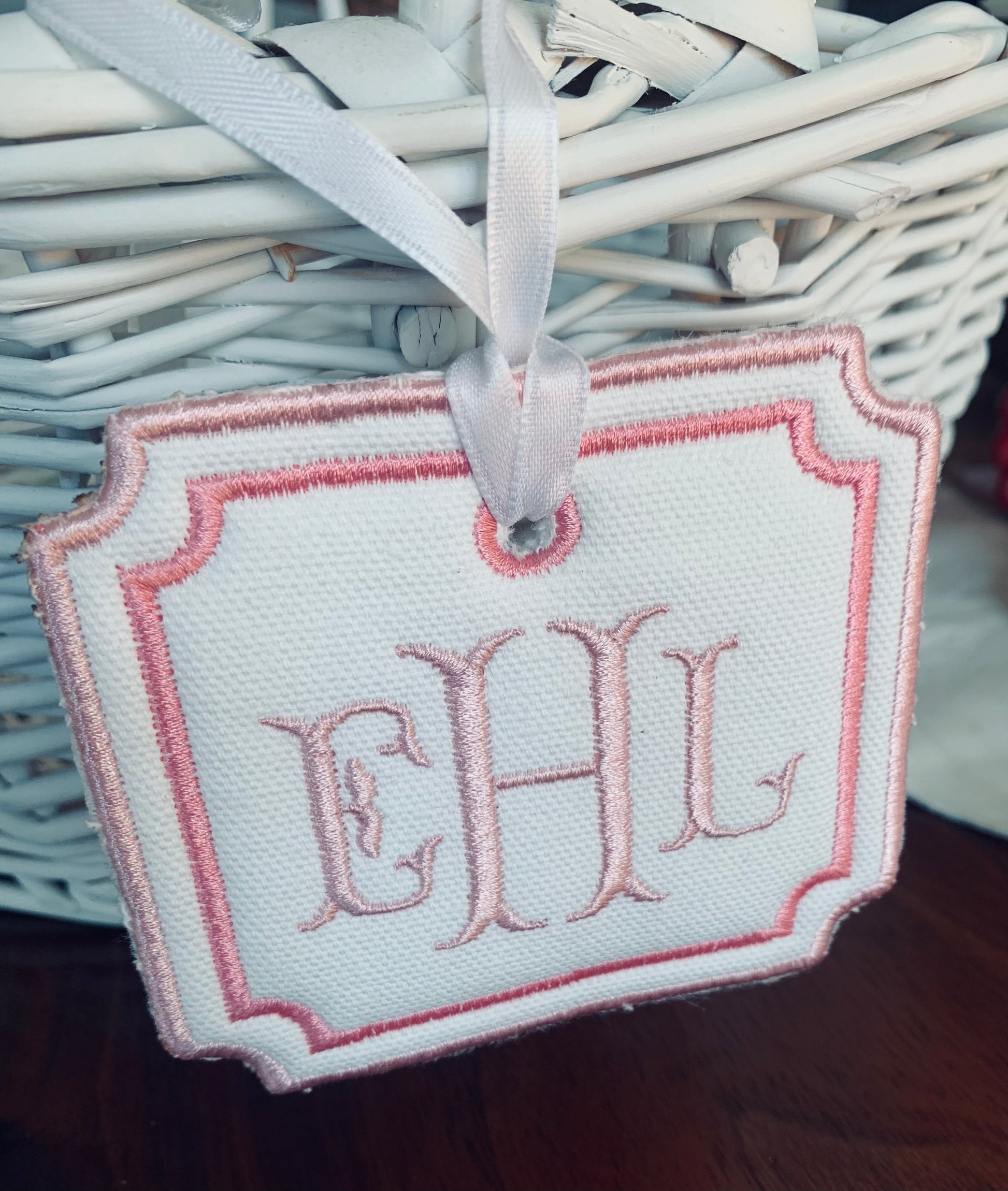 BAG TAG/EASTER BASKET TAG WHITE + PINK FRAMED
