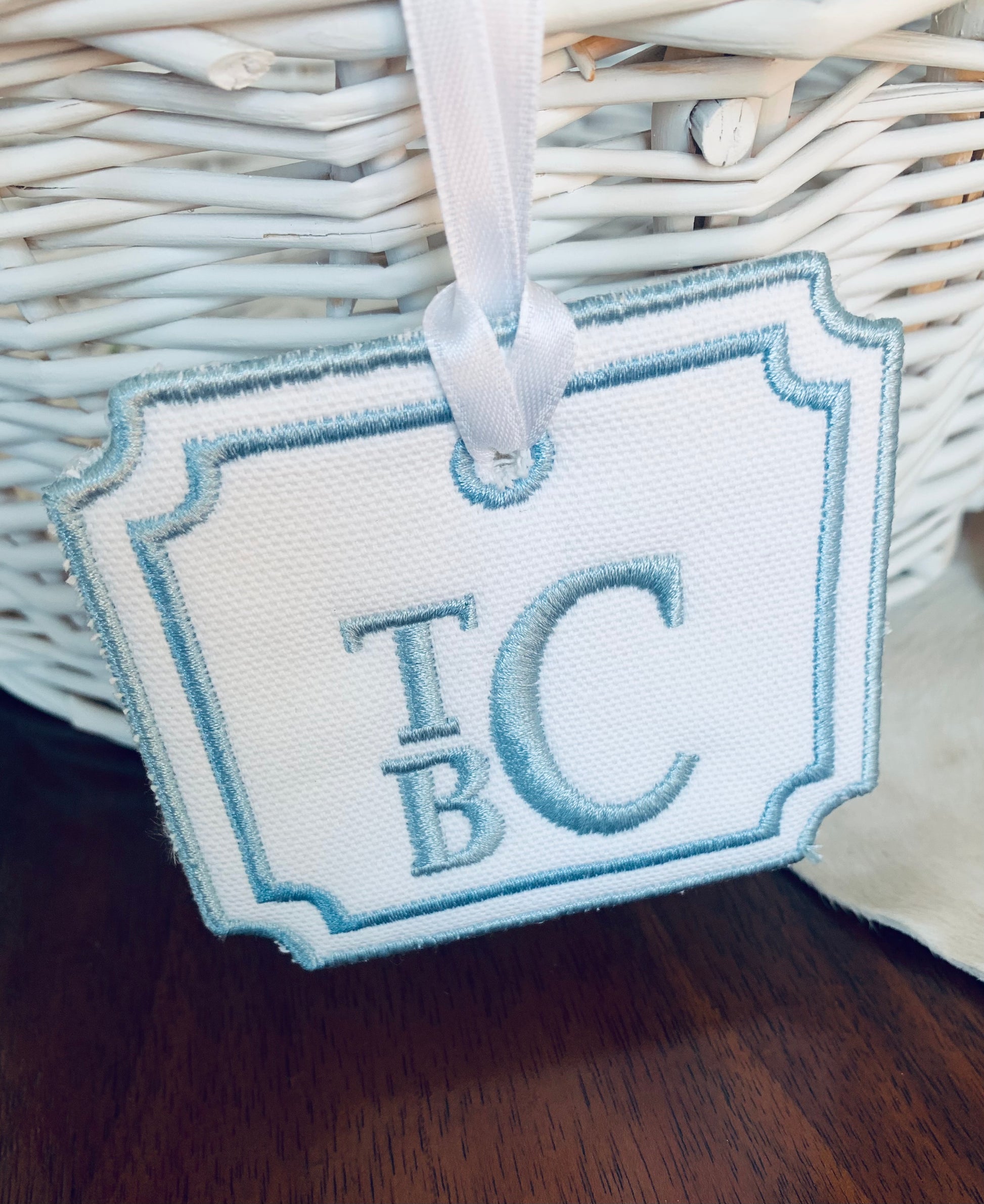 BAG TAG/EASTER TAG WHITE + BLUE FRAMED