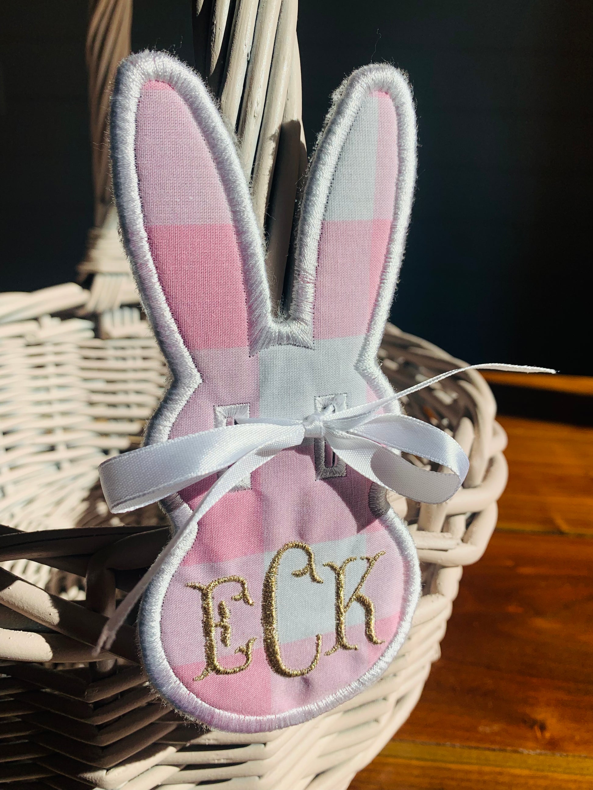 BAG TAGS/ EASTER TAG PINK WHITE GINGHAM GOLD MONOGRAM