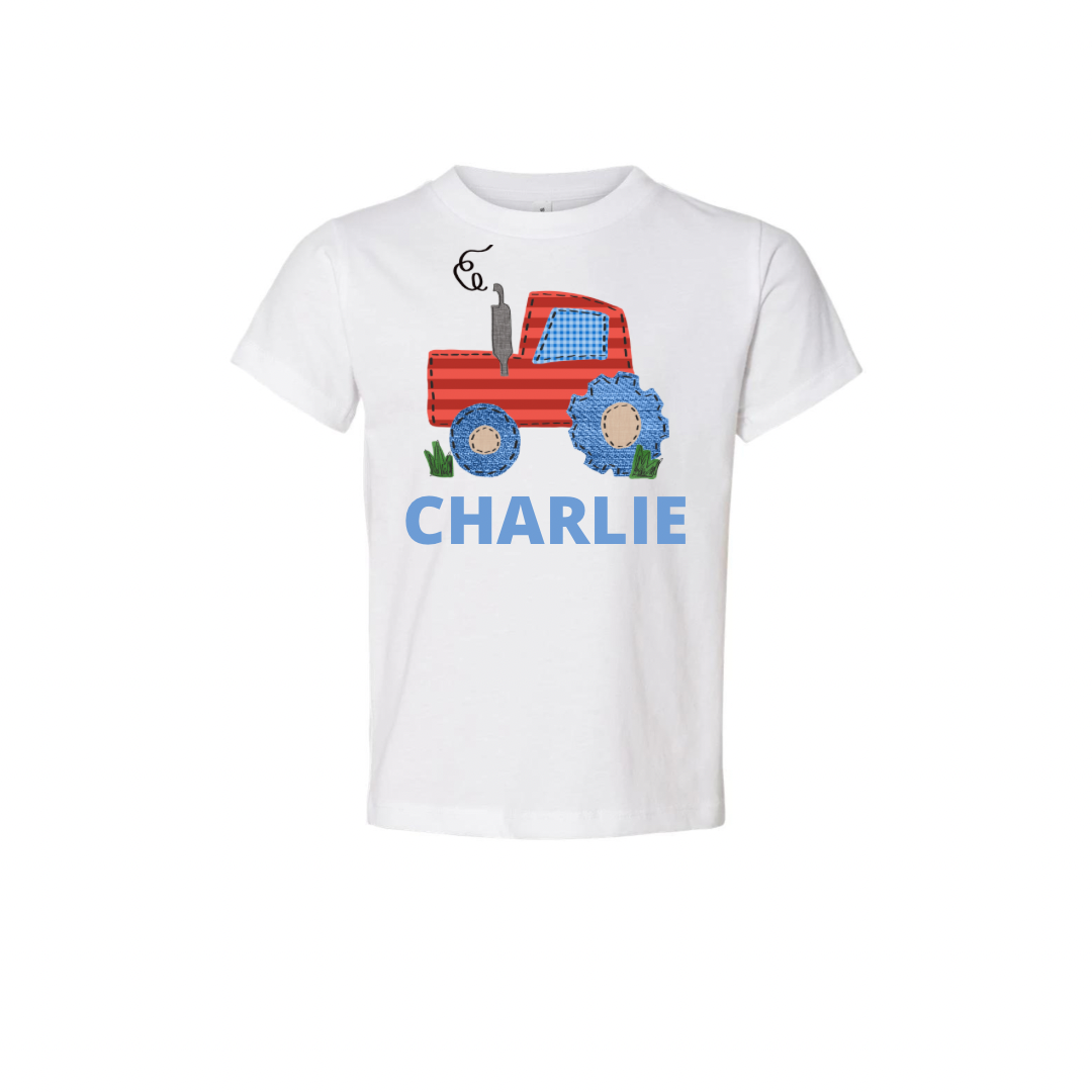 BOYS PRINTED MONOGRAMMED TRACTOR TEE