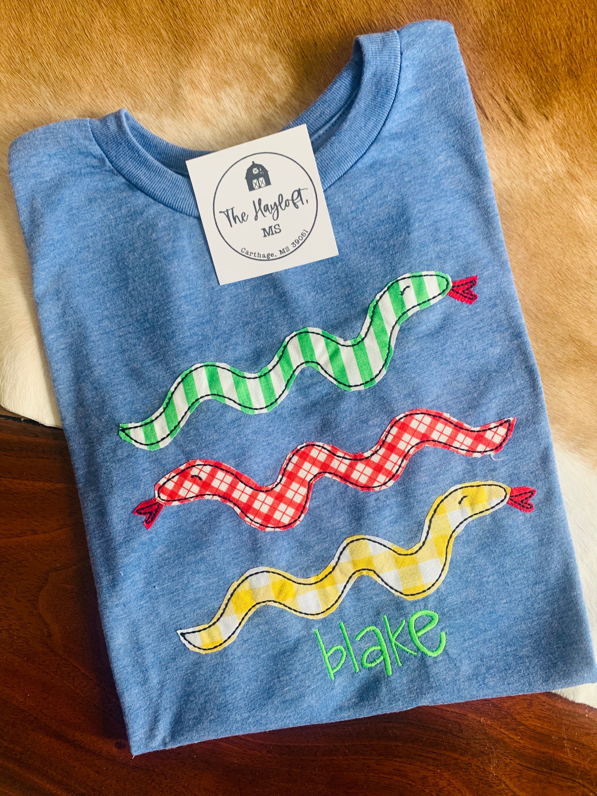 BOYS SILLY SNAKE TEE ON BLUE BELLA CANVAS