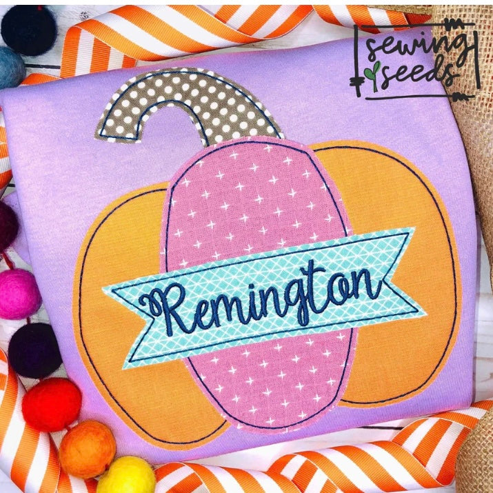 GIRLS APPLIQUÉ PUMPKIN TEE WITH NAME BANNER