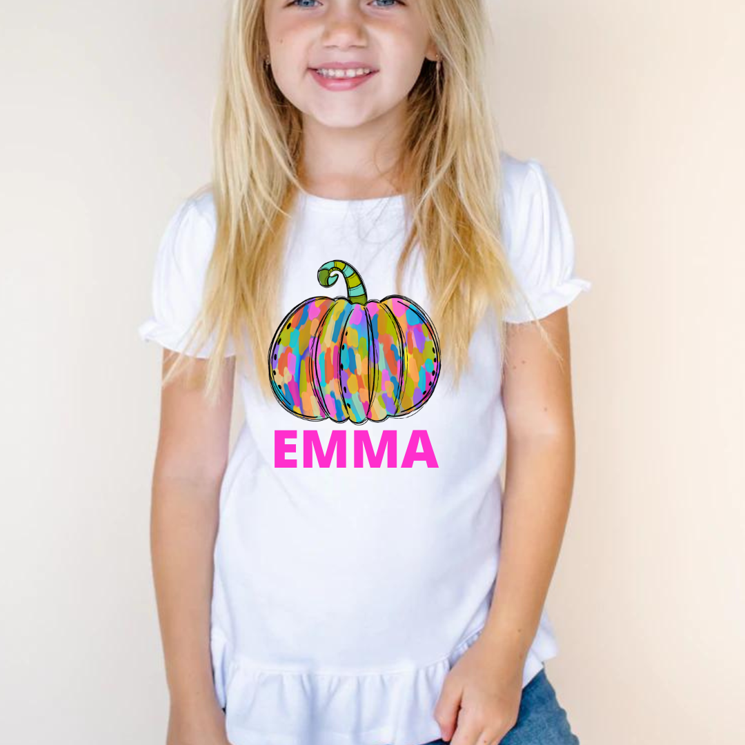 GIRLS COLORFUL PUMPKIN NAME TEE