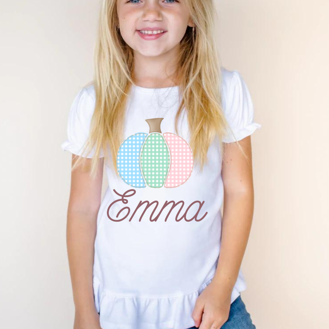 GIRLS SOFT COLOR GINGHAM PUMPKIN TEE