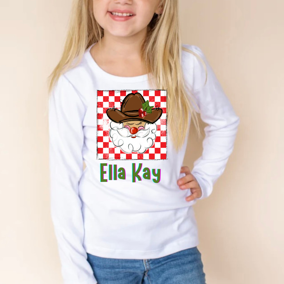 SANTA WITH RED CHECKERED BACKGROUND LONG SLEEVE/SHORT SLEEVE