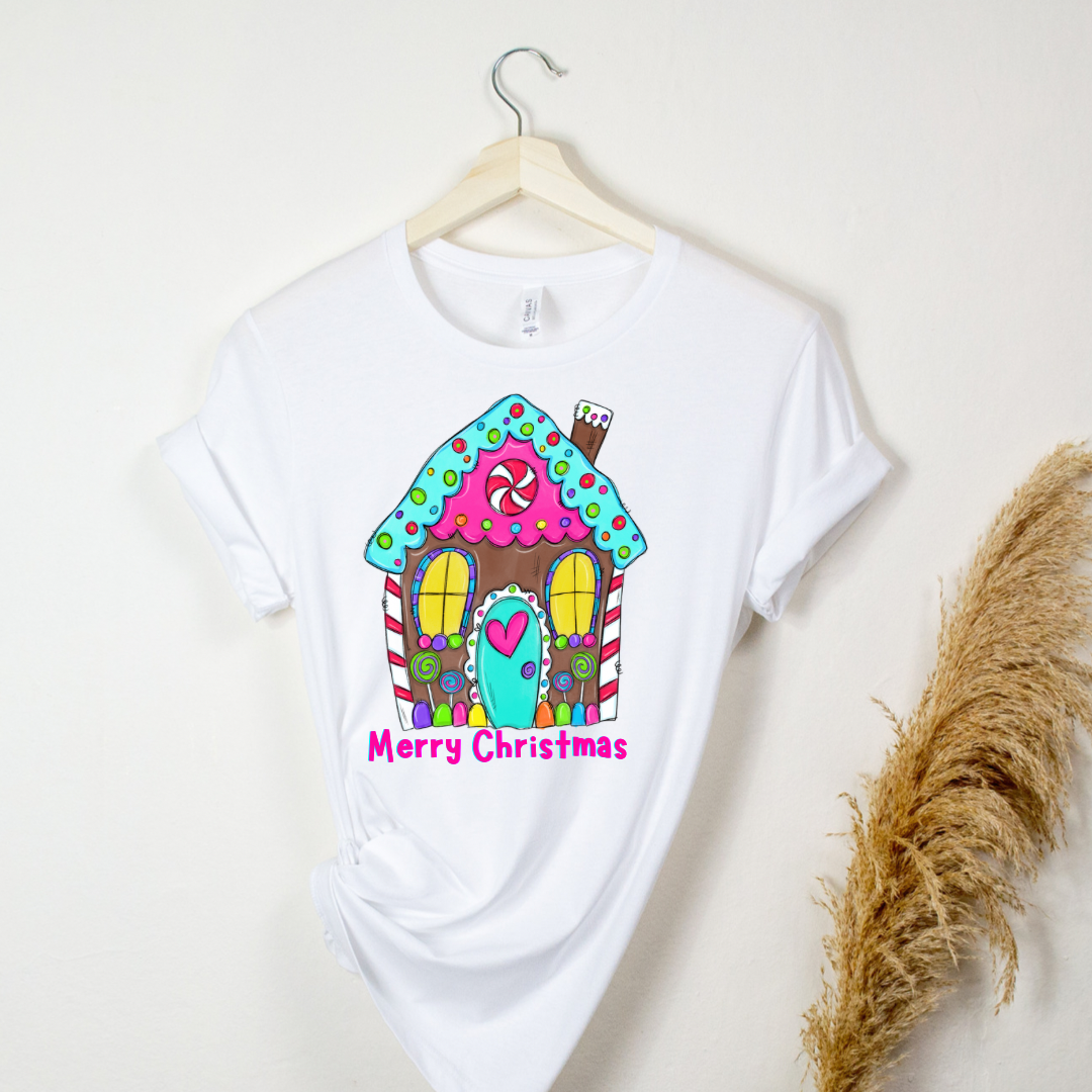 MERRY CHRISTMAS GINGERBREAD HOUSE TEE/SWEATSHIRT