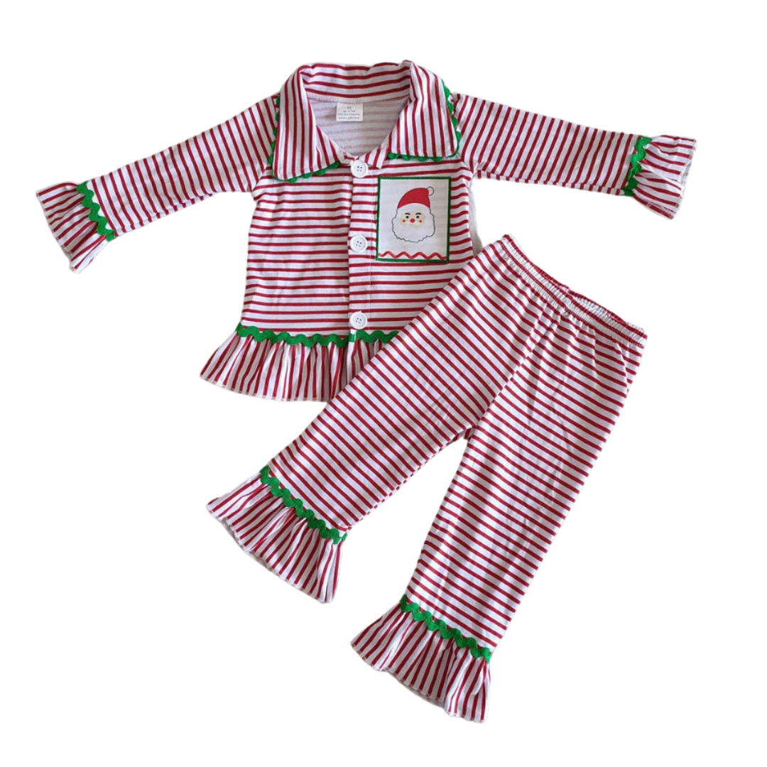 GIRLS RED AND WHITE STRIPED CHRISTMAS PAJAMAS MO