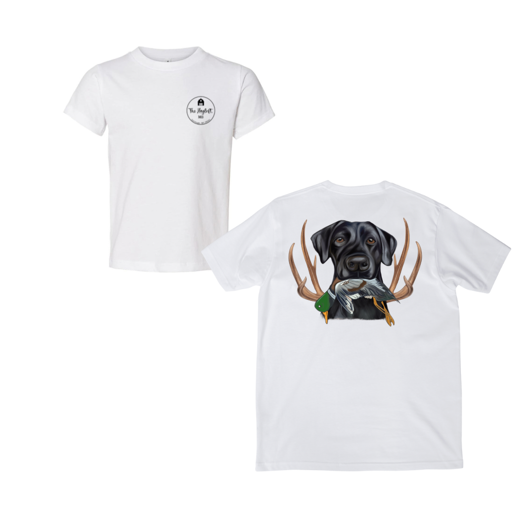 HUNTING DOG WITH DUCK AND HORNS