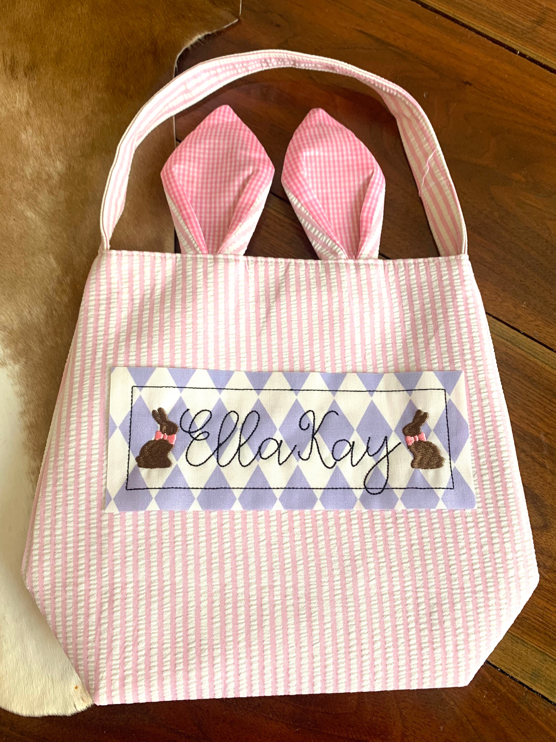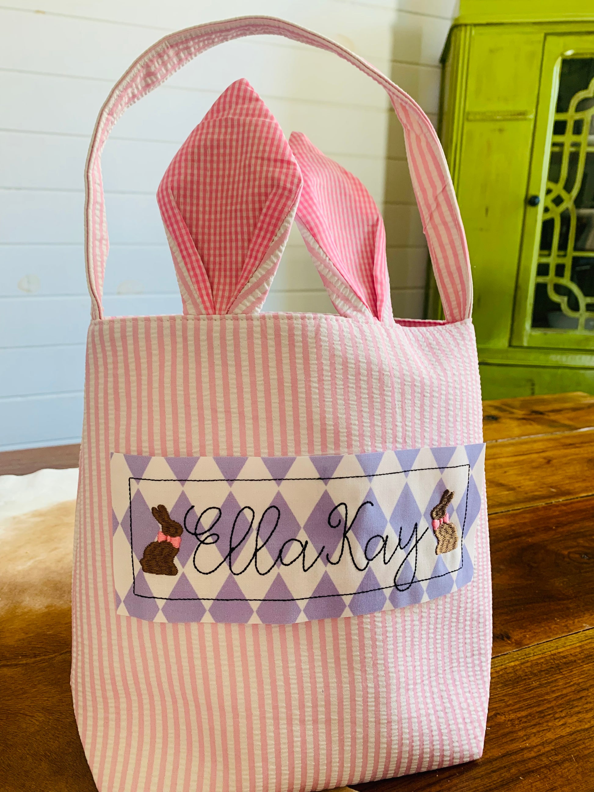 MONOGRAMMED PINK EASTER SEERSUCKER BASKET