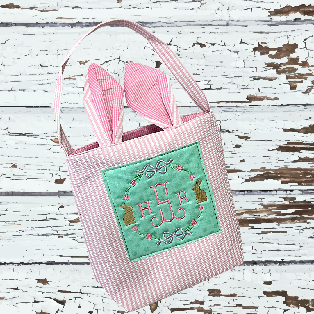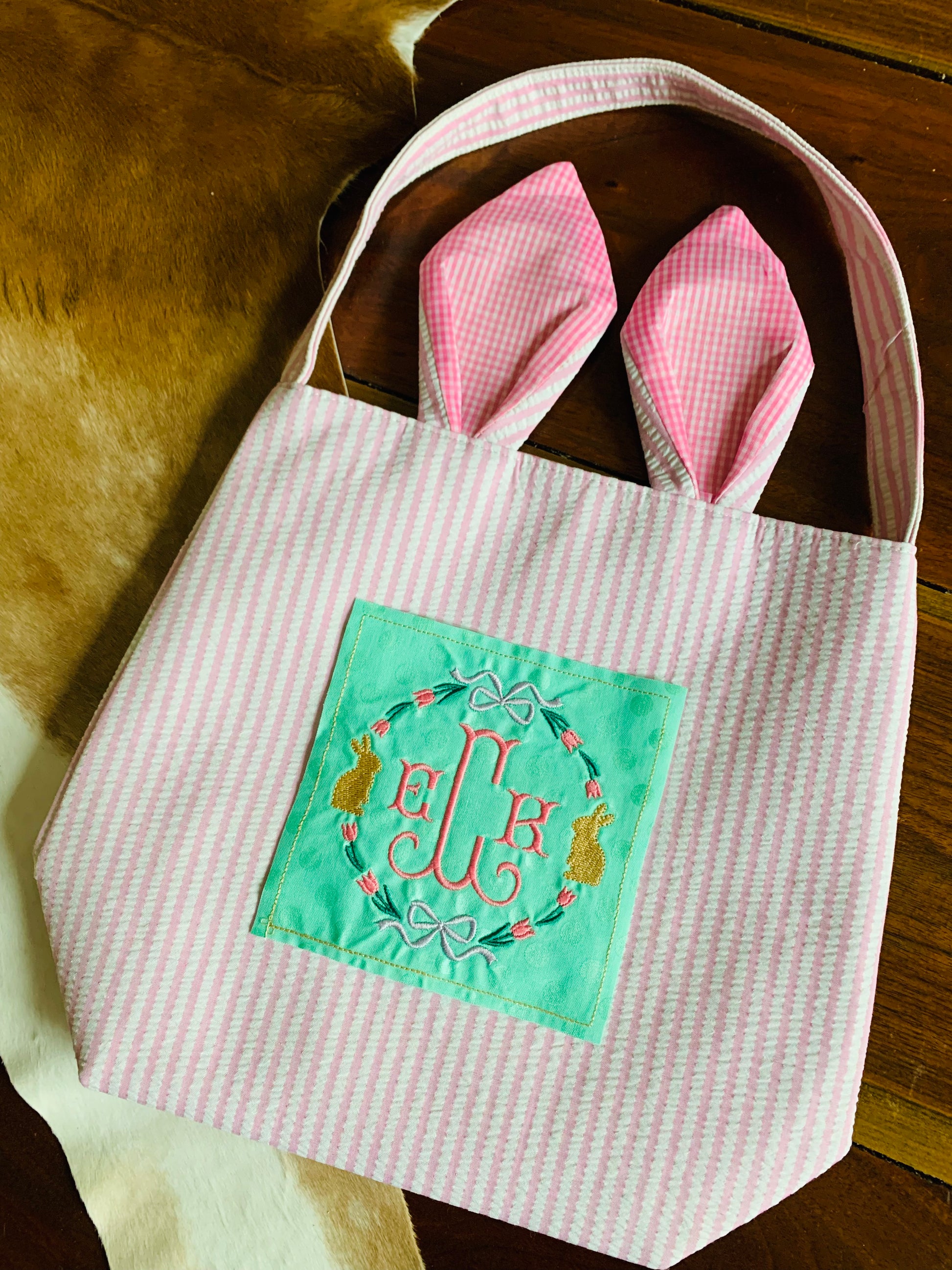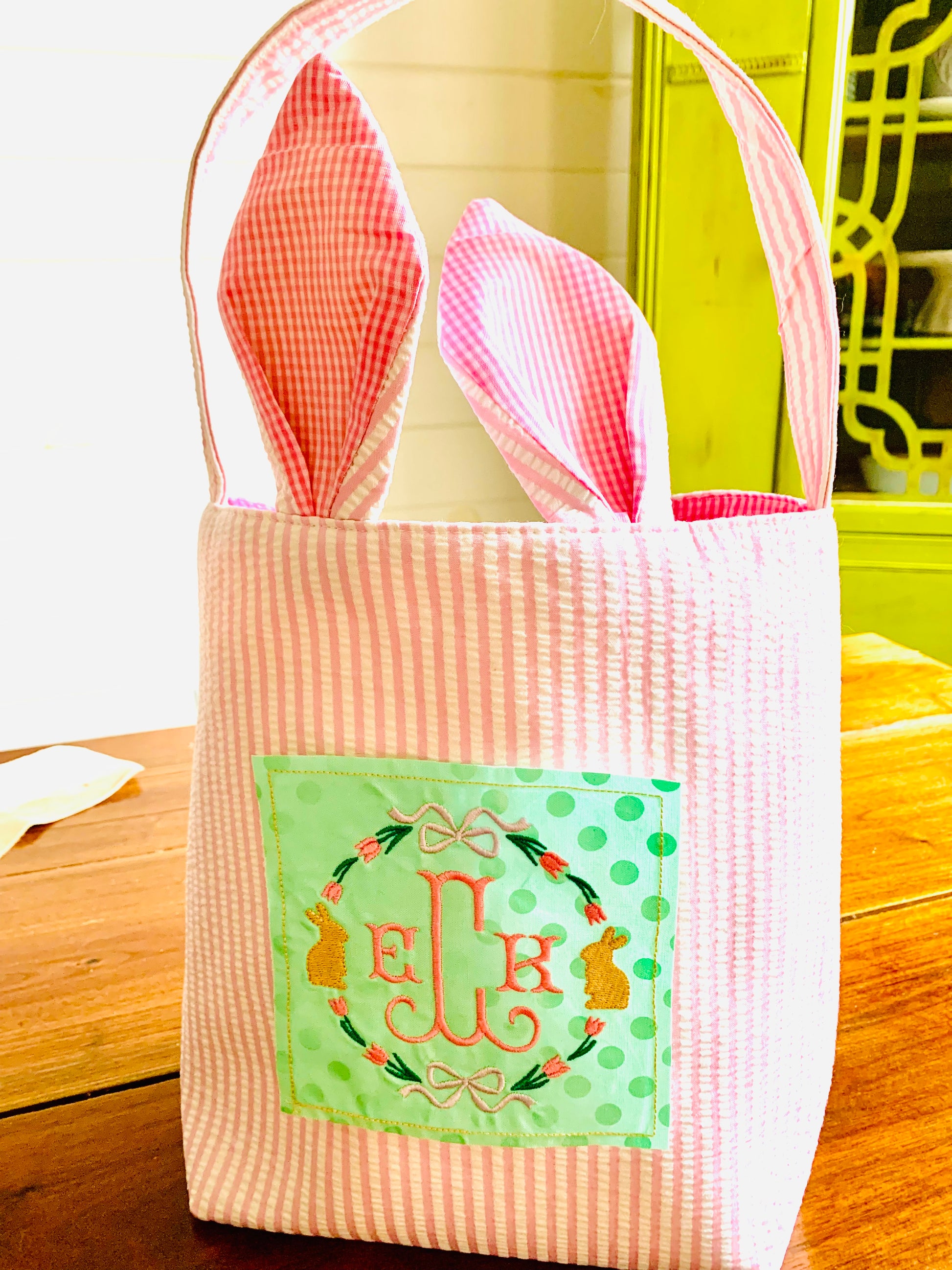 PINK SEERSUCKER EASTER BASKET WITH FRAME MONOGRAM