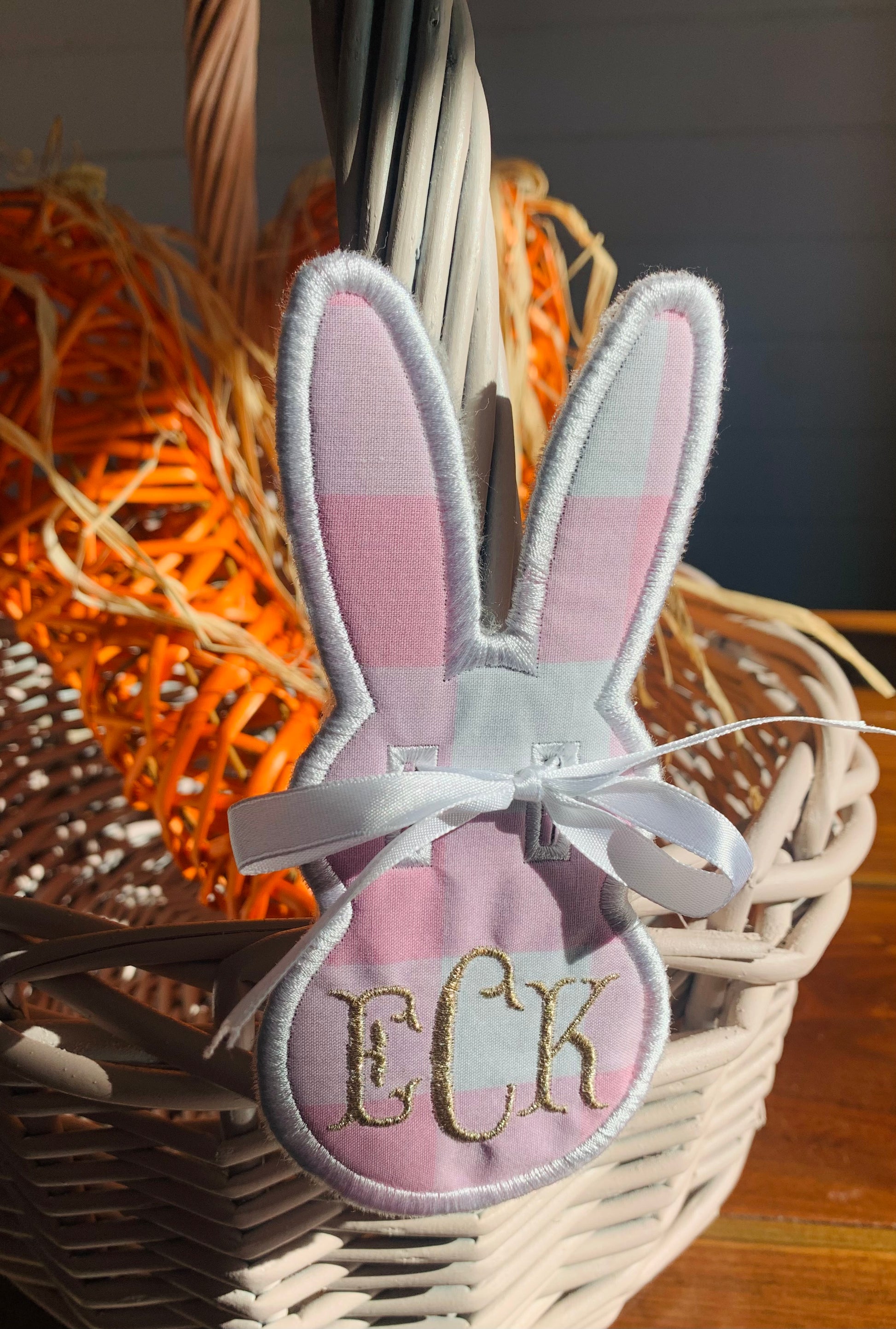PINK DIAMOND MONOGRAM EASTER BUNNY TAG