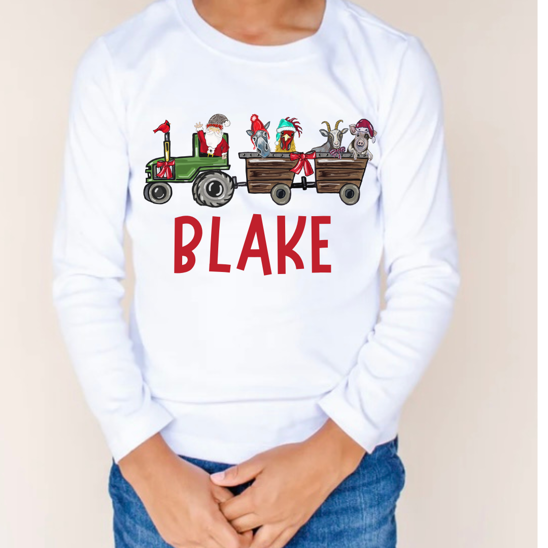 SANTA TRACTOR WITH FARM ANIMALS LONG SLEEVE/SHORT SLEEVE