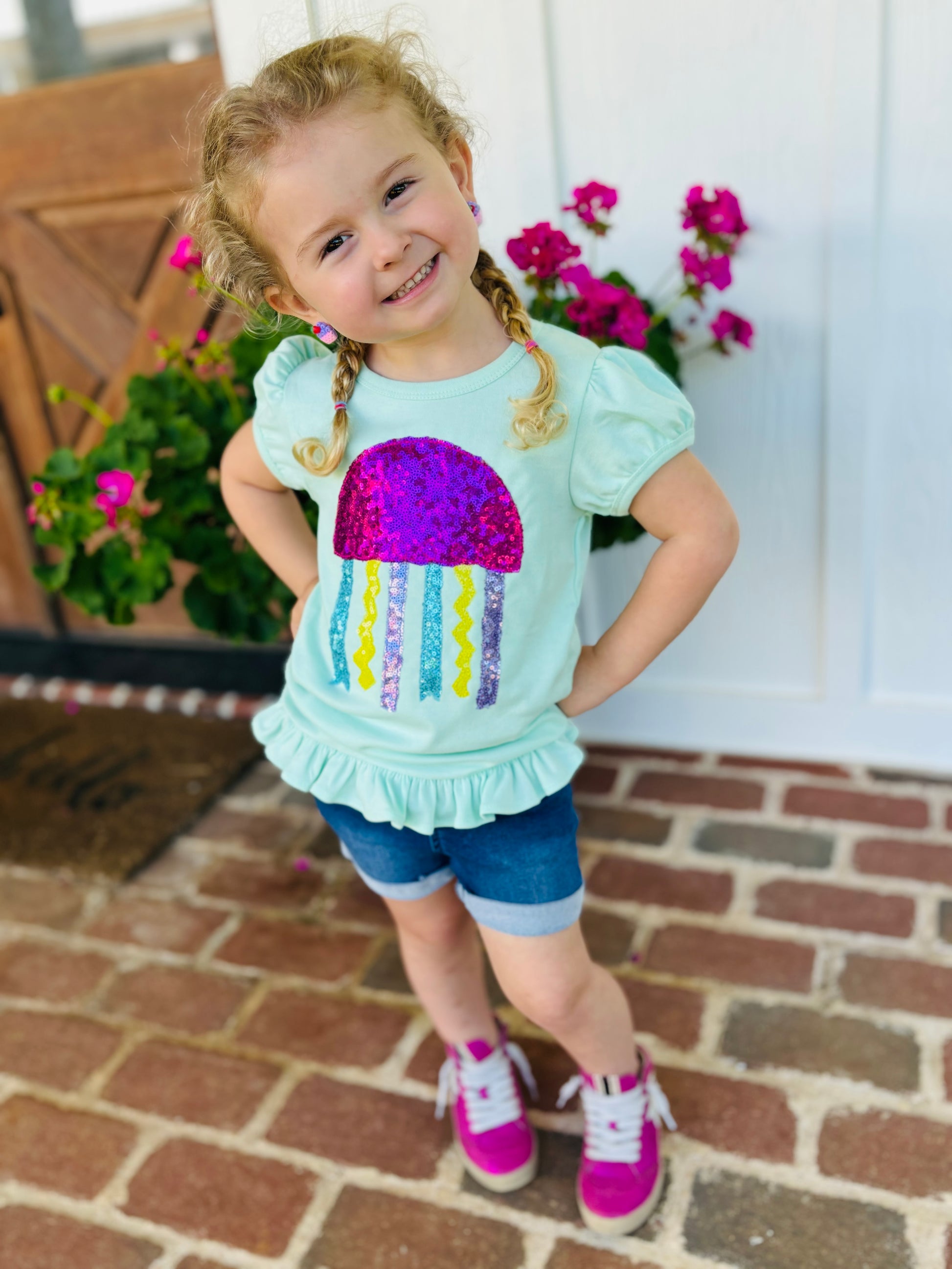 SEQUIN JELLYFISH PUFF SLEEVE TEE